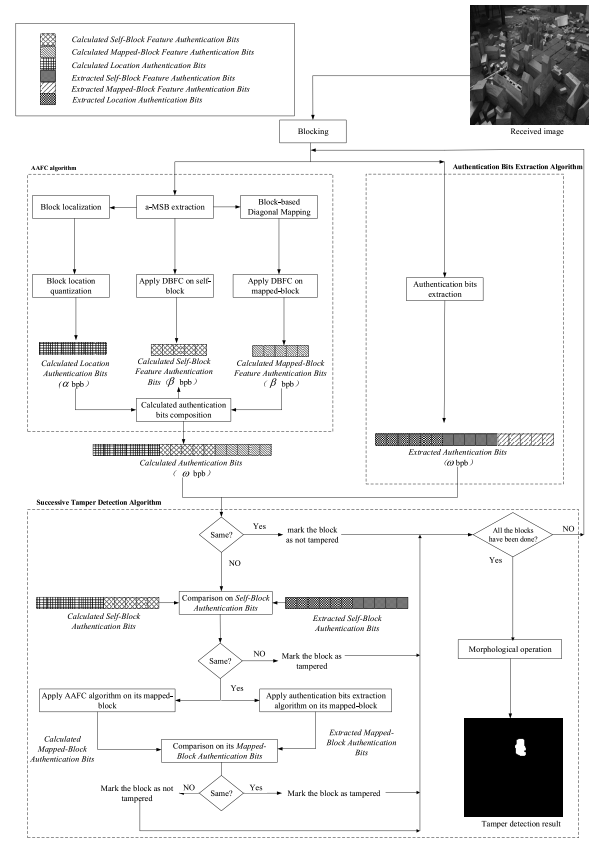 Adaptive feature calculation and diagonal mapping for successive recovery of tampered regions